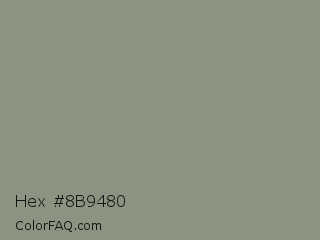 Hex #8b9480 Color is a normal green color and the nearest color is Artichoke #8f9779. Hex code #8b9480 and RGB value is rgb(139,148,128). In RGB color space, this color is composed of 55% red, 58% green, 50% blue, In CMYK color space, this color is composed of 6% cyan, 0% magenta, 14% yellow , 42% black , In HSL color space, this color has a hue angle of 87° , 9% saturation and 54% lightness.
