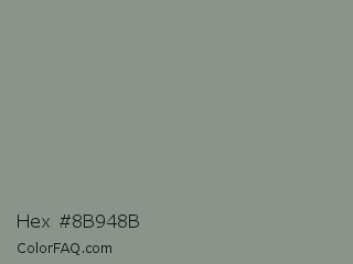 Hex #8b948b Color is a normal green color and the nearest color is Stack #8a8f8a. Hex code #8b948b and RGB value is rgb(139,148,139). In RGB color space, this color is composed of 55% red, 58% green, 55% blue, In CMYK color space, this color is composed of 6% cyan, 0% magenta, 6% yellow , 42% black , In HSL color space, this color has a hue angle of 120° , 4% saturation and 56% lightness.
