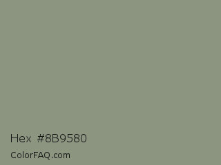 Hex #8b9580 Color is a normal green color and the nearest color is Artichoke #8f9779. Hex code #8b9580 and RGB value is rgb(139,149,128). In RGB color space, this color is composed of 55% red, 58% green, 50% blue, In CMYK color space, this color is composed of 7% cyan, 0% magenta, 14% yellow , 42% black , In HSL color space, this color has a hue angle of 89° , 9% saturation and 54% lightness.
