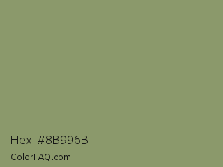 Hex #8b996b Color is a normal lime color and the nearest color is Avocado Pulp #888d65. Hex code #8b996b and RGB value is rgb(139,153,107). In RGB color space, this color is composed of 55% red, 60% green, 42% blue, In CMYK color space, this color is composed of 9% cyan, 0% magenta, 30% yellow , 40% black , In HSL color space, this color has a hue angle of 78° , 18% saturation and 51% lightness.