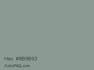 Hex #8b9b93 Color is a normal green color and the nearest color is Mantle #8b9c90. Hex code #8b9b93 and RGB value is rgb(139,155,147). In RGB color space, this color is composed of 55% red, 61% green, 58% blue, In CMYK color space, this color is composed of 10% cyan, 0% magenta, 5% yellow , 39% black , In HSL color space, this color has a hue angle of 150° , 7% saturation and 58% lightness.