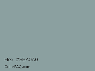 Hex #8ba0a0 Color is a normal cyan color and the nearest color is Granny Smith #84a0a0. Hex code #8ba0a0 and RGB value is rgb(139,160,160). In RGB color space, this color is composed of 55% red, 63% green, 63% blue, In CMYK color space, this color is composed of 13% cyan, 0% magenta, 0% yellow , 37% black , In HSL color space, this color has a hue angle of 180° , 10% saturation and 59% lightness.