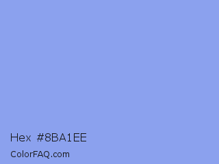 Hex #8ba1ee Color is a light blue color and the nearest color is Portage #8b9fee. Hex code #8ba1ee and RGB value is rgb(139,161,238). In RGB color space, this color is composed of 55% red, 63% green, 93% blue, In CMYK color space, this color is composed of 42% cyan, 32% magenta, 0% yellow , 7% black , In HSL color space, this color has a hue angle of 227° , 74% saturation and 74% lightness.