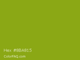 Hex #8ba815 Color is a normal lime color and the nearest color is Citron #9fa91f. Hex code #8ba815 and RGB value is rgb(139,168,21). In RGB color space, this color is composed of 55% red, 66% green, 8% blue, In CMYK color space, this color is composed of 17% cyan, 0% magenta, 88% yellow , 34% black , In HSL color space, this color has a hue angle of 72° , 78% saturation and 37% lightness.