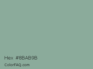 Hex #8bab9b Color is a light green color and the nearest color is Morning Blue #8da399. Hex code #8bab9b and RGB value is rgb(139,171,155). In RGB color space, this color is composed of 55% red, 67% green, 61% blue, In CMYK color space, this color is composed of 19% cyan, 0% magenta, 9% yellow , 33% black , In HSL color space, this color has a hue angle of 150° , 16% saturation and 61% lightness.