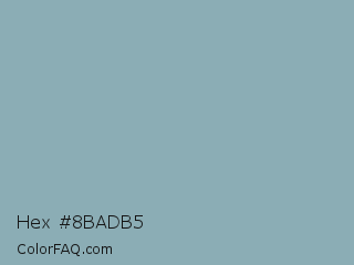 Hex #8badb5 Color is a light cyan color and the nearest color is Pewter Blue #8ba8b7. Hex code #8badb5 and RGB value is rgb(139,173,181). In RGB color space, this color is composed of 55% red, 68% green, 71% blue, In CMYK color space, this color is composed of 23% cyan, 4% magenta, 0% yellow , 29% black , In HSL color space, this color has a hue angle of 191° , 22% saturation and 63% lightness.