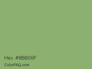 Hex #8bb06f Color is a normal green color and the nearest color is Asparagus #87a96b. Hex code #8bb06f and RGB value is rgb(139,176,111). In RGB color space, this color is composed of 55% red, 69% green, 44% blue, In CMYK color space, this color is composed of 21% cyan, 0% magenta, 37% yellow , 31% black , In HSL color space, this color has a hue angle of 94° , 29% saturation and 56% lightness.