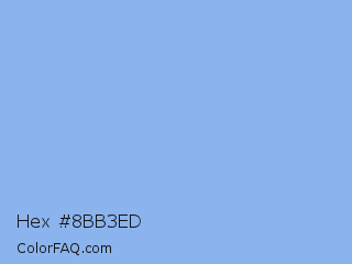 Hex #8bb3ed Color is a light blue color and the nearest color is Jordy Blue #8ab9f1. Hex code #8bb3ed and RGB value is rgb(139,179,237). In RGB color space, this color is composed of 55% red, 70% green, 93% blue, In CMYK color space, this color is composed of 41% cyan, 24% magenta, 0% yellow , 7% black , In HSL color space, this color has a hue angle of 216° , 73% saturation and 74% lightness.