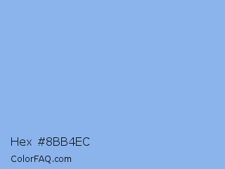 Hex #8bb4ec Color is a light blue color and the nearest color is Jordy Blue #8ab9f1. Hex code #8bb4ec and RGB value is rgb(139,180,236). In RGB color space, this color is composed of 55% red, 71% green, 93% blue, In CMYK color space, this color is composed of 41% cyan, 24% magenta, 0% yellow , 7% black , In HSL color space, this color has a hue angle of 215° , 72% saturation and 74% lightness.