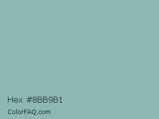 Hex #8bb9b1 Color is a light cyan color and the nearest color is Summer Green #96bbab. Hex code #8bb9b1 and RGB value is rgb(139,185,177). In RGB color space, this color is composed of 55% red, 73% green, 69% blue, In CMYK color space, this color is composed of 25% cyan, 0% magenta, 4% yellow , 27% black , In HSL color space, this color has a hue angle of 170° , 25% saturation and 64% lightness.