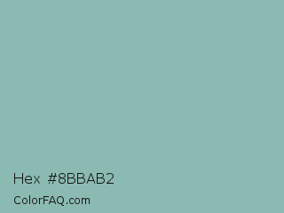 Hex #8bbab2 Color is a light cyan color and the nearest color is Summer Green #96bbab. Hex code #8bbab2 and RGB value is rgb(139,186,178). In RGB color space, this color is composed of 55% red, 73% green, 70% blue, In CMYK color space, this color is composed of 25% cyan, 0% magenta, 4% yellow , 27% black , In HSL color space, this color has a hue angle of 170° , 25% saturation and 64% lightness.