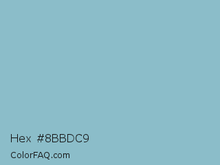 Hex #8bbdc9 Color is a light cyan color and the nearest color is Half Baked #85c4cc. Hex code #8bbdc9 and RGB value is rgb(139,189,201). In RGB color space, this color is composed of 55% red, 74% green, 79% blue, In CMYK color space, this color is composed of 31% cyan, 6% magenta, 0% yellow , 21% black , In HSL color space, this color has a hue angle of 192° , 36% saturation and 67% lightness.