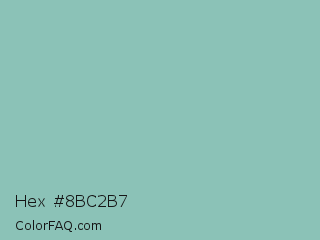 Hex #8bc2b7 Color is a light cyan color and the nearest color is Shadow Green #9ac2b8. Hex code #8bc2b7 and RGB value is rgb(139,194,183). In RGB color space, this color is composed of 55% red, 76% green, 72% blue, In CMYK color space, this color is composed of 28% cyan, 0% magenta, 6% yellow , 24% black , In HSL color space, this color has a hue angle of 168° , 31% saturation and 65% lightness.