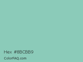 Hex #8bcbb9 Color is a light green color and the nearest color is Vista Blue #8fd6b4. Hex code #8bcbb9 and RGB value is rgb(139,203,185). In RGB color space, this color is composed of 55% red, 80% green, 73% blue, In CMYK color space, this color is composed of 32% cyan, 0% magenta, 9% yellow , 20% black , In HSL color space, this color has a hue angle of 163° , 38% saturation and 67% lightness.