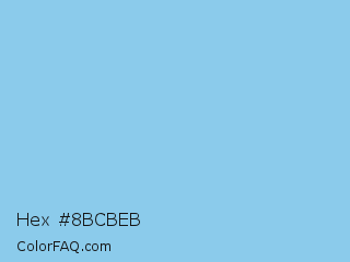 Hex #8bcbeb Color is a light blue color and the nearest color is Sky Blue #87ceeb. Hex code #8bcbeb and RGB value is rgb(139,203,235). In RGB color space, this color is composed of 55% red, 80% green, 92% blue, In CMYK color space, this color is composed of 41% cyan, 14% magenta, 0% yellow , 8% black , In HSL color space, this color has a hue angle of 200° , 71% saturation and 73% lightness.