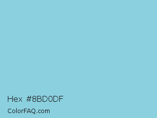 Hex #8bd0df Color is a light cyan color and the nearest color is Sky Blue #87ceeb. Hex code #8bd0df and RGB value is rgb(139,208,223). In RGB color space, this color is composed of 55% red, 82% green, 87% blue, In CMYK color space, this color is composed of 38% cyan, 7% magenta, 0% yellow , 13% black , In HSL color space, this color has a hue angle of 191° , 57% saturation and 71% lightness.