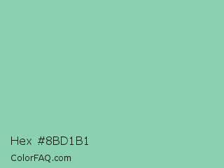 Hex #8bd1b1 Color is a light green color and the nearest color is Vista Blue #8fd6b4. Hex code #8bd1b1 and RGB value is rgb(139,209,177). In RGB color space, this color is composed of 55% red, 82% green, 69% blue, In CMYK color space, this color is composed of 33% cyan, 0% magenta, 15% yellow , 18% black , In HSL color space, this color has a hue angle of 153° , 43% saturation and 68% lightness.