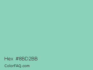 Hex #8bd2bb Color is a light green color and the nearest color is Pearl Aqua #88d8c0. Hex code #8bd2bb and RGB value is rgb(139,210,187). In RGB color space, this color is composed of 55% red, 82% green, 73% blue, In CMYK color space, this color is composed of 34% cyan, 0% magenta, 11% yellow , 18% black , In HSL color space, this color has a hue angle of 161° , 44% saturation and 68% lightness.