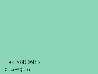 Hex #8bd6bb Color is a light green color and the nearest color is Pearl Aqua #88d8c0. Hex code #8bd6bb and RGB value is rgb(139,214,187). In RGB color space, this color is composed of 55% red, 84% green, 73% blue, In CMYK color space, this color is composed of 35% cyan, 0% magenta, 13% yellow , 16% black , In HSL color space, this color has a hue angle of 158° , 48% saturation and 69% lightness.