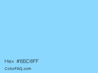 Hex #8bd8ff Color is a light blue color and the nearest color is Pale Cyan #87d3f8. Hex code #8bd8ff and RGB value is rgb(139,216,255). In RGB color space, this color is composed of 55% red, 85% green, 100% blue, In CMYK color space, this color is composed of 45% cyan, 15% magenta, 0% yellow , 0% black , In HSL color space, this color has a hue angle of 200° , 100% saturation and 77% lightness.