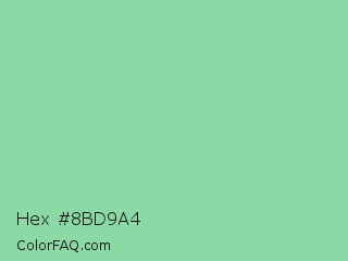 Hex #8bd9a4 Color is a light green color and the nearest color is Vista Blue #8fd6b4. Hex code #8bd9a4 and RGB value is rgb(139,217,164). In RGB color space, this color is composed of 55% red, 85% green, 64% blue, In CMYK color space, this color is composed of 36% cyan, 0% magenta, 24% yellow , 15% black , In HSL color space, this color has a hue angle of 139° , 51% saturation and 70% lightness.