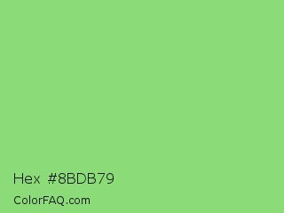 Hex #8bdb79 Color is a light green color and the nearest color is Pastel Green #77dd77. Hex code #8bdb79 and RGB value is rgb(139,219,121). In RGB color space, this color is composed of 55% red, 86% green, 47% blue, In CMYK color space, this color is composed of 37% cyan, 0% magenta, 45% yellow , 14% black , In HSL color space, this color has a hue angle of 109° , 58% saturation and 67% lightness.