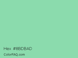 Hex #8bdbad Color is a light green color and the nearest color is Vista Blue #8fd6b4. Hex code #8bdbad and RGB value is rgb(139,219,173). In RGB color space, this color is composed of 55% red, 86% green, 68% blue, In CMYK color space, this color is composed of 37% cyan, 0% magenta, 21% yellow , 14% black , In HSL color space, this color has a hue angle of 146° , 53% saturation and 70% lightness.
