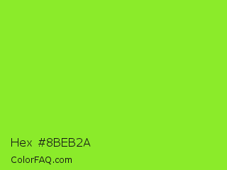 Hex #8beb2a Color is a normal green color and the nearest color is Spring Frost #87ff2a. Hex code #8beb2a and RGB value is rgb(139,235,42). In RGB color space, this color is composed of 55% red, 92% green, 16% blue, In CMYK color space, this color is composed of 41% cyan, 0% magenta, 82% yellow , 8% black , In HSL color space, this color has a hue angle of 90° , 83% saturation and 54% lightness.
