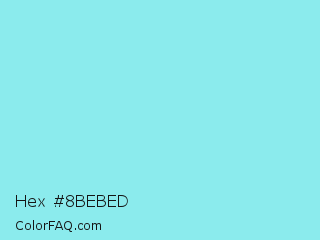 Hex #8bebed Color is a light cyan color and the nearest color is Medium Sky Blue #80daeb. Hex code #8bebed and RGB value is rgb(139,235,237). In RGB color space, this color is composed of 55% red, 92% green, 93% blue, In CMYK color space, this color is composed of 41% cyan, 1% magenta, 0% yellow , 7% black , In HSL color space, this color has a hue angle of 181° , 73% saturation and 74% lightness.