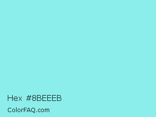 Hex #8beeeb Color is a light cyan color and the nearest color is Riptide #8be6d8. Hex code #8beeeb and RGB value is rgb(139,238,235). In RGB color space, this color is composed of 55% red, 93% green, 92% blue, In CMYK color space, this color is composed of 42% cyan, 0% magenta, 1% yellow , 7% black , In HSL color space, this color has a hue angle of 178° , 74% saturation and 74% lightness.