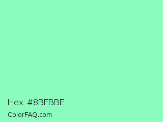 Hex #8bfbbe Color is a light green color and the nearest color is Aquamarine #7fffd4. Hex code #8bfbbe and RGB value is rgb(139,251,190). In RGB color space, this color is composed of 55% red, 98% green, 75% blue, In CMYK color space, this color is composed of 45% cyan, 0% magenta, 24% yellow , 2% black , In HSL color space, this color has a hue angle of 147° , 93% saturation and 76% lightness.