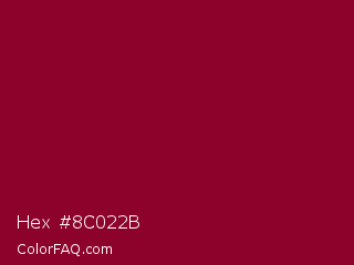 Hex #8c022b Color is a dark rose color and the nearest color is Paprika #8d0226. Hex code #8c022b and RGB value is rgb(140,2,43). In RGB color space, this color is composed of 55% red, 1% green, 17% blue, In CMYK color space, this color is composed of 0% cyan, 99% magenta, 69% yellow , 45% black , In HSL color space, this color has a hue angle of 342° , 97% saturation and 28% lightness.