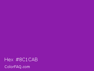 Hex #8c1cab Color is a normal purple color and the nearest color is Violet Eggplant #991199. Hex code #8c1cab and RGB value is rgb(140,28,171). In RGB color space, this color is composed of 55% red, 11% green, 67% blue, In CMYK color space, this color is composed of 18% cyan, 84% magenta, 0% yellow , 33% black , In HSL color space, this color has a hue angle of 287° , 72% saturation and 39% lightness.