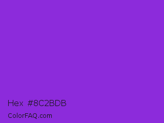 Hex #8c2bdb Color is a normal purple color and the nearest color is Blue Violet #8a2be2. Hex code #8c2bdb and RGB value is rgb(140,43,219). In RGB color space, this color is composed of 55% red, 17% green, 86% blue, In CMYK color space, this color is composed of 36% cyan, 80% magenta, 0% yellow , 14% black , In HSL color space, this color has a hue angle of 273° , 71% saturation and 51% lightness.