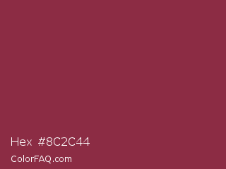 Hex #8c2c44 Color is a normal red color and the nearest color is Solid Pink #893843. Hex code #8c2c44 and RGB value is rgb(140,44,68). In RGB color space, this color is composed of 55% red, 17% green, 27% blue, In CMYK color space, this color is composed of 0% cyan, 69% magenta, 51% yellow , 45% black , In HSL color space, this color has a hue angle of 345° , 52% saturation and 36% lightness.