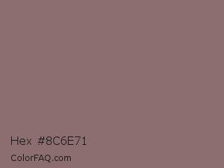 Hex #8c6e71 Color is a normal red color and the nearest color is Opium #8e6f70. Hex code #8c6e71 and RGB value is rgb(140,110,113). In RGB color space, this color is composed of 55% red, 43% green, 44% blue, In CMYK color space, this color is composed of 0% cyan, 21% magenta, 19% yellow , 45% black , In HSL color space, this color has a hue angle of 354° , 12% saturation and 49% lightness.