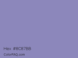 Hex #8c87bb Color is a light indigo color and the nearest color is Lavender Purple #967bb6. Hex code #8c87bb and RGB value is rgb(140,135,187). In RGB color space, this color is composed of 55% red, 53% green, 73% blue, In CMYK color space, this color is composed of 25% cyan, 28% magenta, 0% yellow , 27% black , In HSL color space, this color has a hue angle of 246° , 28% saturation and 63% lightness.