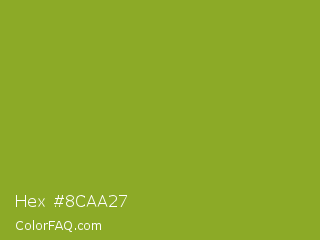 Hex #8caa27 Color is a normal lime color and the nearest color is Sushi #87ab39. Hex code #8caa27 and RGB value is rgb(140,170,39). In RGB color space, this color is composed of 55% red, 67% green, 15% blue, In CMYK color space, this color is composed of 18% cyan, 0% magenta, 77% yellow , 33% black , In HSL color space, this color has a hue angle of 74° , 63% saturation and 41% lightness.
