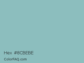 Hex #8cbebe Color is a light cyan color and the nearest color is Shadow Green #9ac2b8. Hex code #8cbebe and RGB value is rgb(140,190,190). In RGB color space, this color is composed of 55% red, 75% green, 75% blue, In CMYK color space, this color is composed of 26% cyan, 0% magenta, 0% yellow , 25% black , In HSL color space, this color has a hue angle of 180° , 28% saturation and 65% lightness.