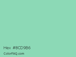 Hex #8cd9b6 Color is a light green color and the nearest color is Vista Blue #8fd6b4. Hex code #8cd9b6 and RGB value is rgb(140,217,182). In RGB color space, this color is composed of 55% red, 85% green, 71% blue, In CMYK color space, this color is composed of 35% cyan, 0% magenta, 16% yellow , 15% black , In HSL color space, this color has a hue angle of 153° , 50% saturation and 70% lightness.