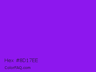 Hex #8d17ee Color is a normal purple color and the nearest color is Veronica #a020f0. Hex code #8d17ee and RGB value is rgb(141,23,238). In RGB color space, this color is composed of 55% red, 9% green, 93% blue, In CMYK color space, this color is composed of 41% cyan, 90% magenta, 0% yellow , 7% black , In HSL color space, this color has a hue angle of 273° , 86% saturation and 51% lightness.