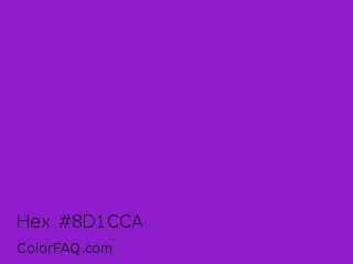Hex #8d1cca Color is a normal purple color and the nearest color is French Violet #8806ce. Hex code #8d1cca and RGB value is rgb(141,28,202). In RGB color space, this color is composed of 55% red, 11% green, 79% blue, In CMYK color space, this color is composed of 30% cyan, 86% magenta, 0% yellow , 21% black , In HSL color space, this color has a hue angle of 279° , 76% saturation and 45% lightness.
