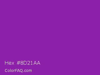 Hex #8d21aa Color is a normal purple color and the nearest color is Violet Eggplant #991199. Hex code #8d21aa and RGB value is rgb(141,33,170). In RGB color space, this color is composed of 55% red, 13% green, 67% blue, In CMYK color space, this color is composed of 17% cyan, 81% magenta, 0% yellow , 33% black , In HSL color space, this color has a hue angle of 287° , 67% saturation and 40% lightness.