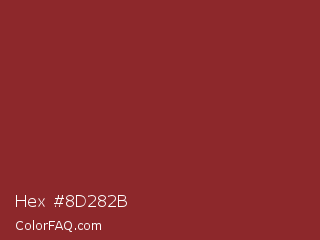 Hex #8d282b Color is a normal red color and the nearest color is Vivid Auburn #922724. Hex code #8d282b and RGB value is rgb(141,40,43). In RGB color space, this color is composed of 55% red, 16% green, 17% blue, In CMYK color space, this color is composed of 0% cyan, 72% magenta, 70% yellow , 45% black , In HSL color space, this color has a hue angle of 358° , 56% saturation and 35% lightness.