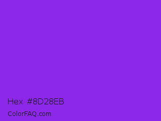 Hex #8d28eb Color is a normal purple color and the nearest color is Blue Violet #8a2be2. Hex code #8d28eb and RGB value is rgb(141,40,235). In RGB color space, this color is composed of 55% red, 16% green, 92% blue, In CMYK color space, this color is composed of 40% cyan, 83% magenta, 0% yellow , 8% black , In HSL color space, this color has a hue angle of 271° , 83% saturation and 54% lightness.