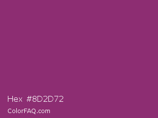 Hex #8d2d72 Color is a normal magenta color and the nearest color is Razzmic Berry Crayola #843179. Hex code #8d2d72 and RGB value is rgb(141,45,114). In RGB color space, this color is composed of 55% red, 18% green, 45% blue, In CMYK color space, this color is composed of 0% cyan, 68% magenta, 19% yellow , 45% black , In HSL color space, this color has a hue angle of 317° , 52% saturation and 36% lightness.