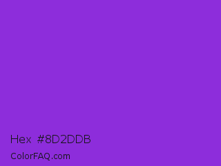 Hex #8d2ddb Color is a normal purple color and the nearest color is Blue Violet #8a2be2. Hex code #8d2ddb and RGB value is rgb(141,45,219). In RGB color space, this color is composed of 55% red, 18% green, 86% blue, In CMYK color space, this color is composed of 36% cyan, 79% magenta, 0% yellow , 14% black , In HSL color space, this color has a hue angle of 273° , 71% saturation and 52% lightness.