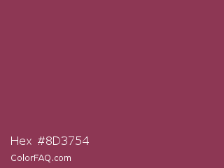 Hex #8d3754 Color is a normal rose color and the nearest color is Camelot #893456. Hex code #8d3754 and RGB value is rgb(141,55,84). In RGB color space, this color is composed of 55% red, 22% green, 33% blue, In CMYK color space, this color is composed of 0% cyan, 61% magenta, 40% yellow , 45% black , In HSL color space, this color has a hue angle of 340° , 44% saturation and 38% lightness.