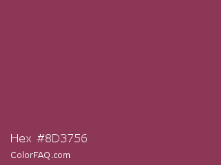 Hex #8d3756 Color is a normal rose color and the nearest color is Quinacridone Magenta #8e3a59. Hex code #8d3756 and RGB value is rgb(141,55,86). In RGB color space, this color is composed of 55% red, 22% green, 34% blue, In CMYK color space, this color is composed of 0% cyan, 61% magenta, 39% yellow , 45% black , In HSL color space, this color has a hue angle of 338° , 44% saturation and 38% lightness.
