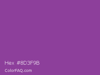 Hex #8d3f9b Color is a normal purple color and the nearest color is Vivid Violet #803790. Hex code #8d3f9b and RGB value is rgb(141,63,155). In RGB color space, this color is composed of 55% red, 25% green, 61% blue, In CMYK color space, this color is composed of 9% cyan, 59% magenta, 0% yellow , 39% black , In HSL color space, this color has a hue angle of 291° , 42% saturation and 43% lightness.